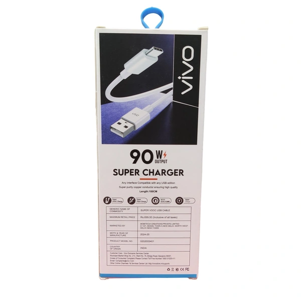 VEV Vivo Data Cable Fast Charging | Type-C | 90W Output | Super Charger (White)