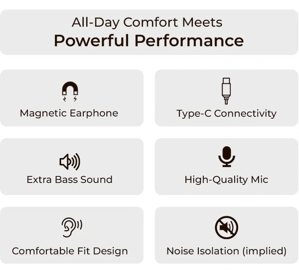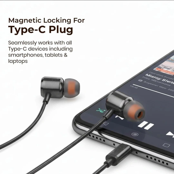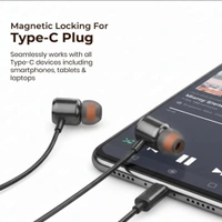 VNV Sonic-01 Magnetic Type-C Earphone | 10Mm Bass Drivers | Inline Control | Comfort Fit Earphone Wired Headphones With Mic Stereo Earphone (BLACK)
