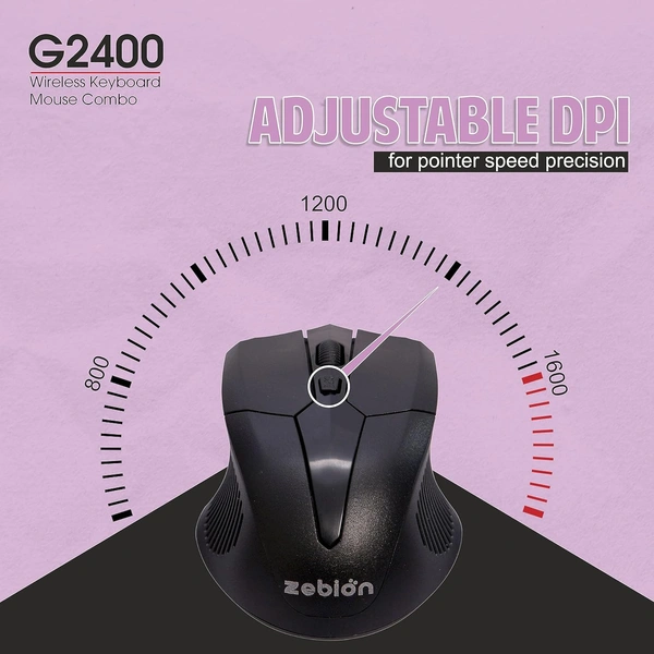 ZEBION G2400 Wireless Keyboard Mouse Combo with Nano Receiver, Slim, Elegant and Ergonomic chiclet Design, Tested with Over 1 Million keystrokes and clicks (Black)